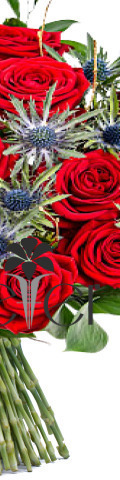 12 Red Roses with Blue Eryngium Thistle