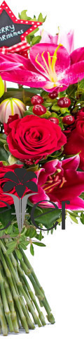 Send our Merry Christmas Bouquet far and wide this holiday season and spread some festive cheer with this luxurious Christmas flower arrangement. With its vibrant display of bright red roses, pink stargazer lilies, red hypericum berries, and seasonal greenery, this Christmas flower bouquet guarantees to get the lucky recipient in the mood for festive fun. You can customise it with the wrapping or vase of your choice, and we’ll send it directly to their door as part of our Christmas flower delivery service. For friends, family, and loved ones, our Merry Christmas Bouquet is the perfect gift.