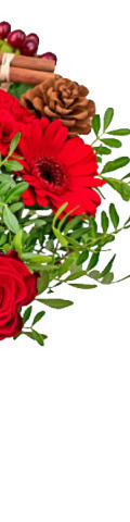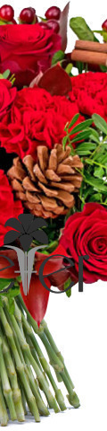 5 Red Roses, 5 Red Carnations, 2 Red Gerbera, Cinnamon Sticks, Pinecones